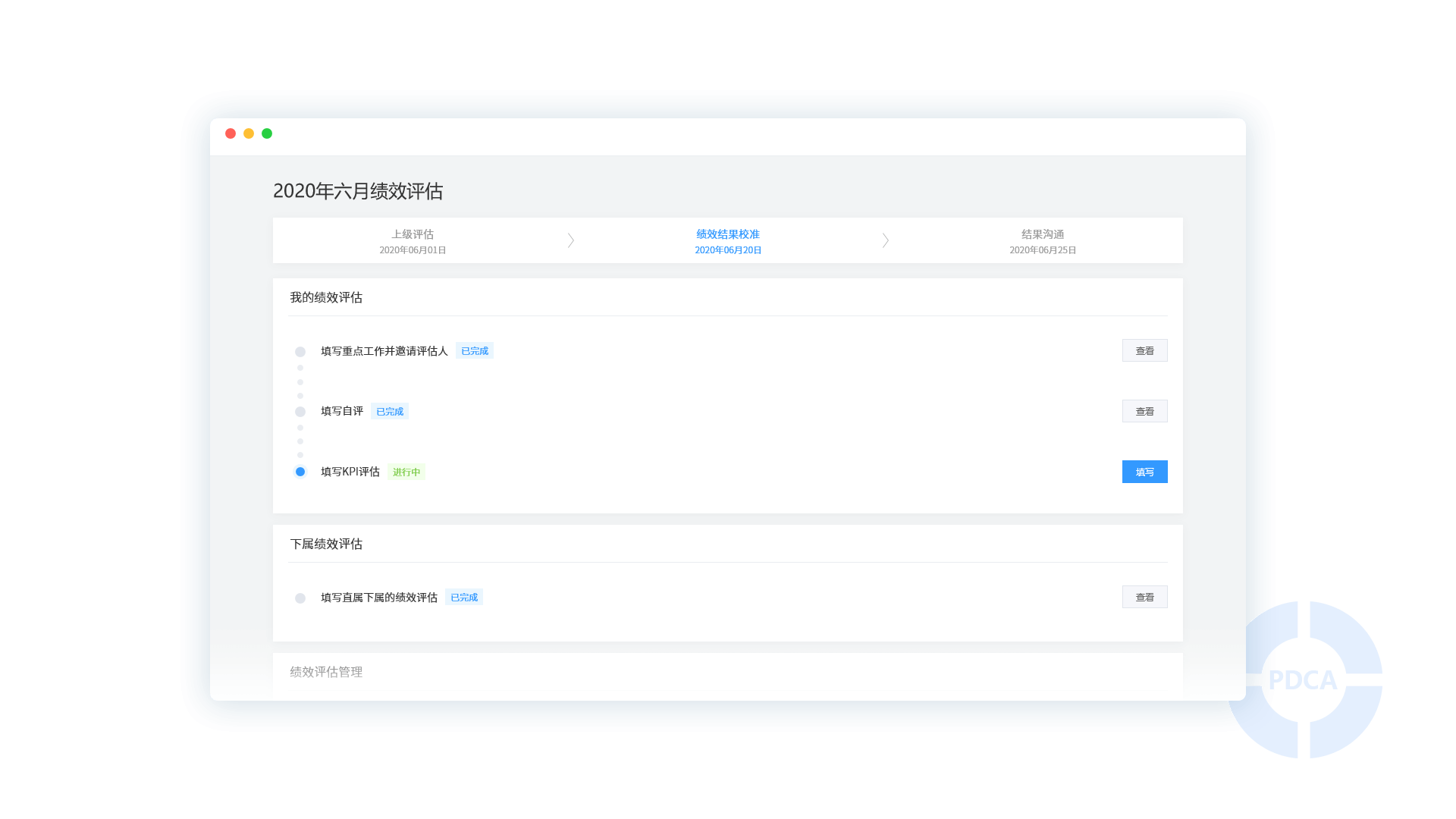 • 系统预置丰富的绩效考核模板库,结合敏捷的绩效规则引擎,灵活适配企业各种绩效管理场景,高效落地KPI、360°、MBO、BSC等主流绩效考核方式,帮助企业建立绩效考核PDCA闭环管理体系,辅助人才管理决策优化,自上而下全面提升战略目标完成效率。