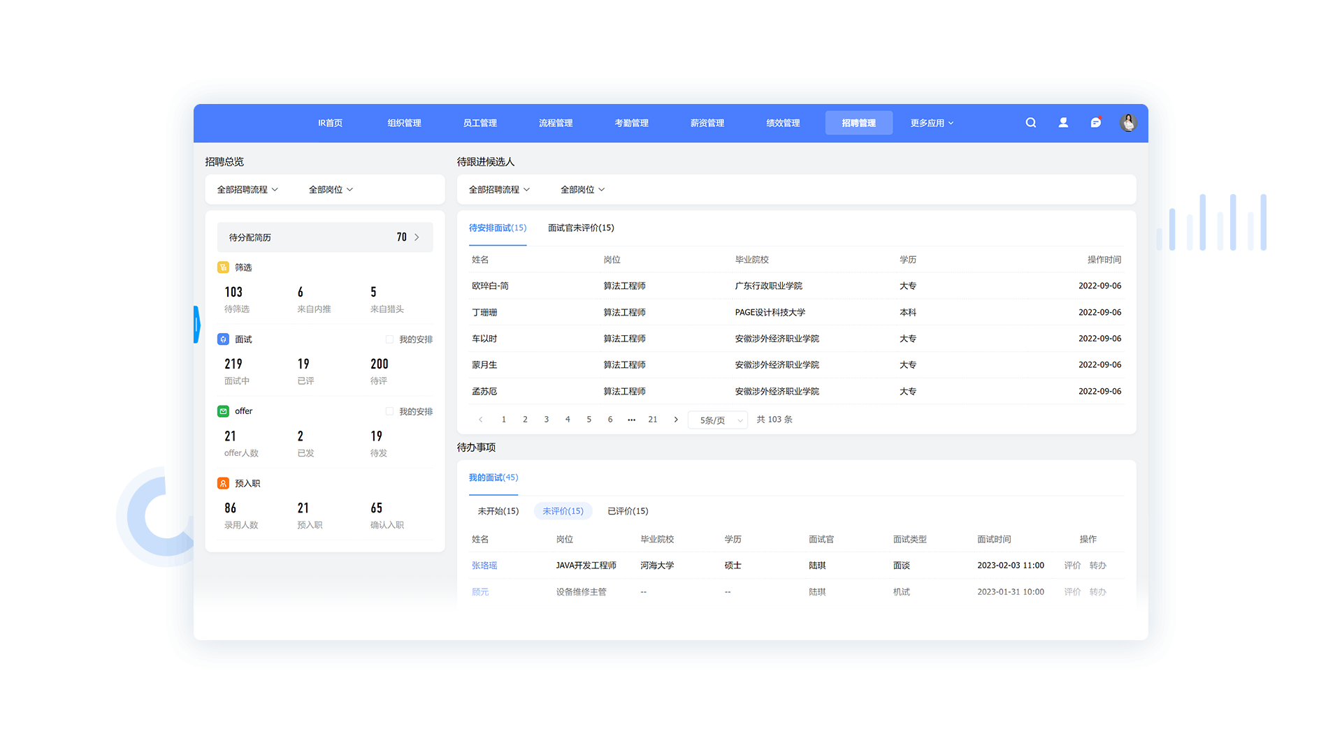 • 招聘过程全流程跟踪,用自动化智能化代替低效沟通,支持岗位一键发布,简历智能解析去重,结合以岗位为核心的人才测评工具,科学匹配关键人才,全面提升招聘效率,一站式解决企业招聘管理难题,告别人才识别困难、招聘重复性工作量大的窘境。