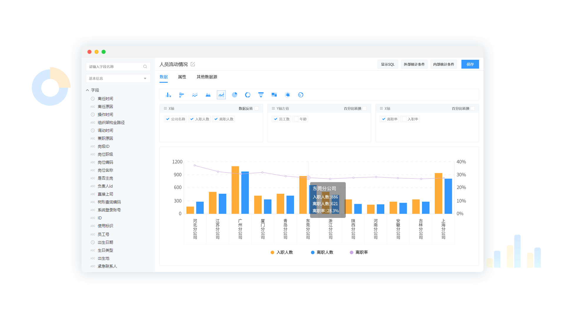 • 预置了各个行业的常用报表模板,对接了云报表平台,并搭载了智能BI报表引擎,支持企业自助图形化建模分析,帮助企业建立完整健全的数据资产管理生态,实现数据多维动态分析与报表智能钻取,洞察组织、人、事数据全局。
